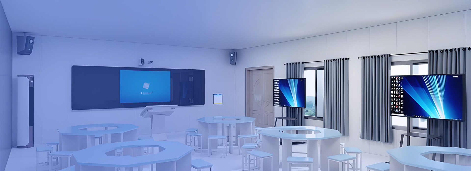 In the classroom, the Ruike intelligent terminal serves as the core, integrating projectors, all-in-one touch screens, TVS, lighting, air conditioners, energy consumption systems, etc., to achieve a convenient "one-click start and end of class" application.