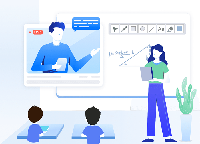 The entire teaching process business is cloudified. No matter where teachers and students are, they can achieve intelligent and precise teaching throughout the entire process before, during and after class through audio and video interaction as well as mobile phone/tablet interaction.